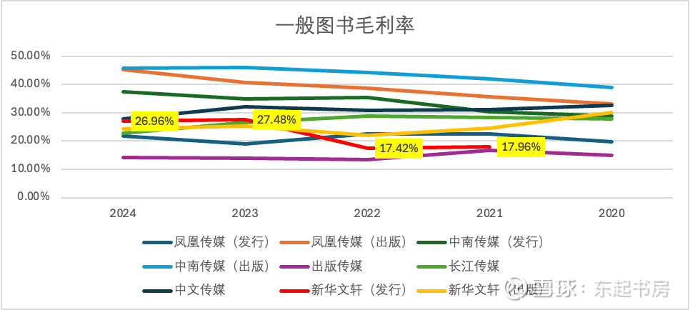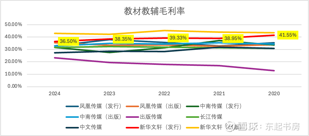 在总营收金额持续增长的情况下,一般图书的发行收入占据越来越大的营收比例。这在未来教材教辅收入大概率持续下跌的情况下,是一个喜人的趋势,表明未来很有可能通过发行一般图书获得收入增长从而维持总营业收入的基本稳定甚至持续小幅增长。