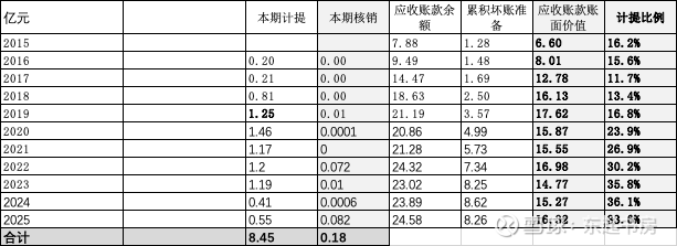 自2015年以来,实际核销的坏账仅仅0.18亿元左右,坏账计提比例也比较充分,达到应收帐款余额的33.6%。