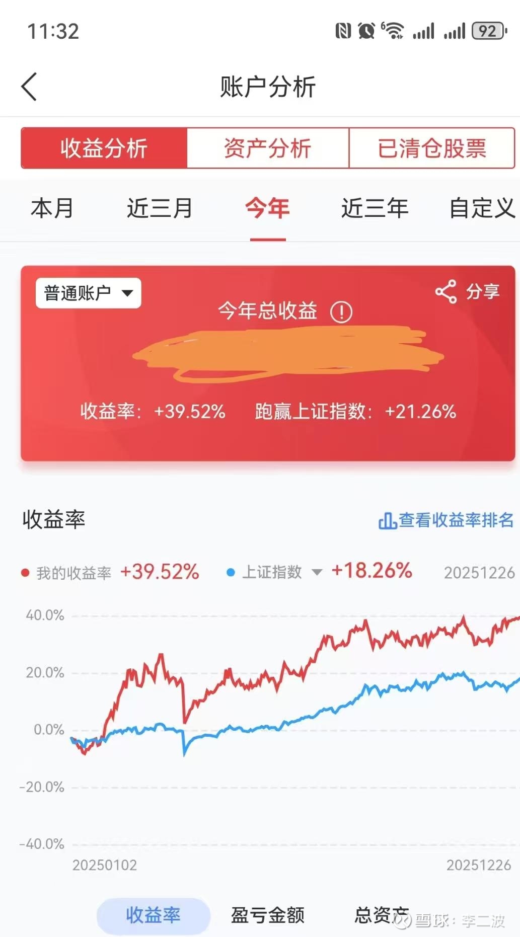 说完生活在聊下投资。25年截止今日收益率是39.5%。