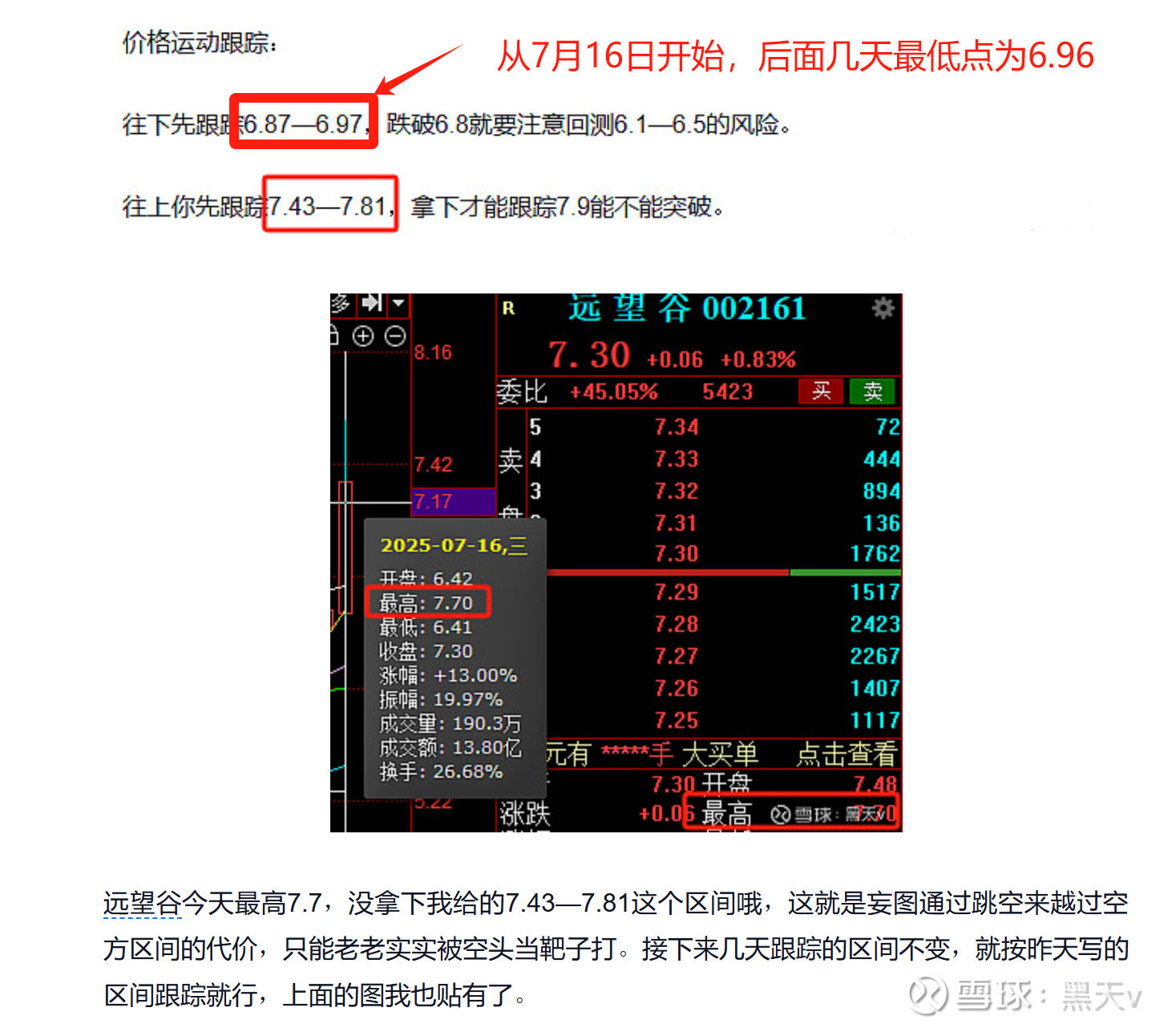 今天看短线票的时候看到了远望谷,我一惊,这不是我7月15日写过的票么,然后翻了一下,果然如此。看来要跟踪的票太多了,就不小心漏了它,我贴一下7月16日的帖子的截图给你们看看: