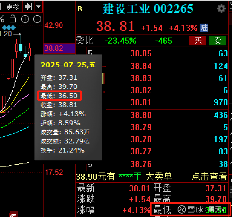 日内最低36.5,刚好回踩区间内,最高39.7虽然没有把我要求的39.86突破,但是今天能收在38.71上方,这就给了多头明天继续攻击39.86的机会。继续跟踪即可。在攻击的时候不跌破37.09更好。