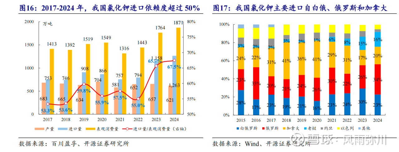 从国内整体需求来看,我国氯化钾一直保持50%以上进口,对进口依赖度高。2024年我们氯化钾消费量约1871万吨,且CAGR