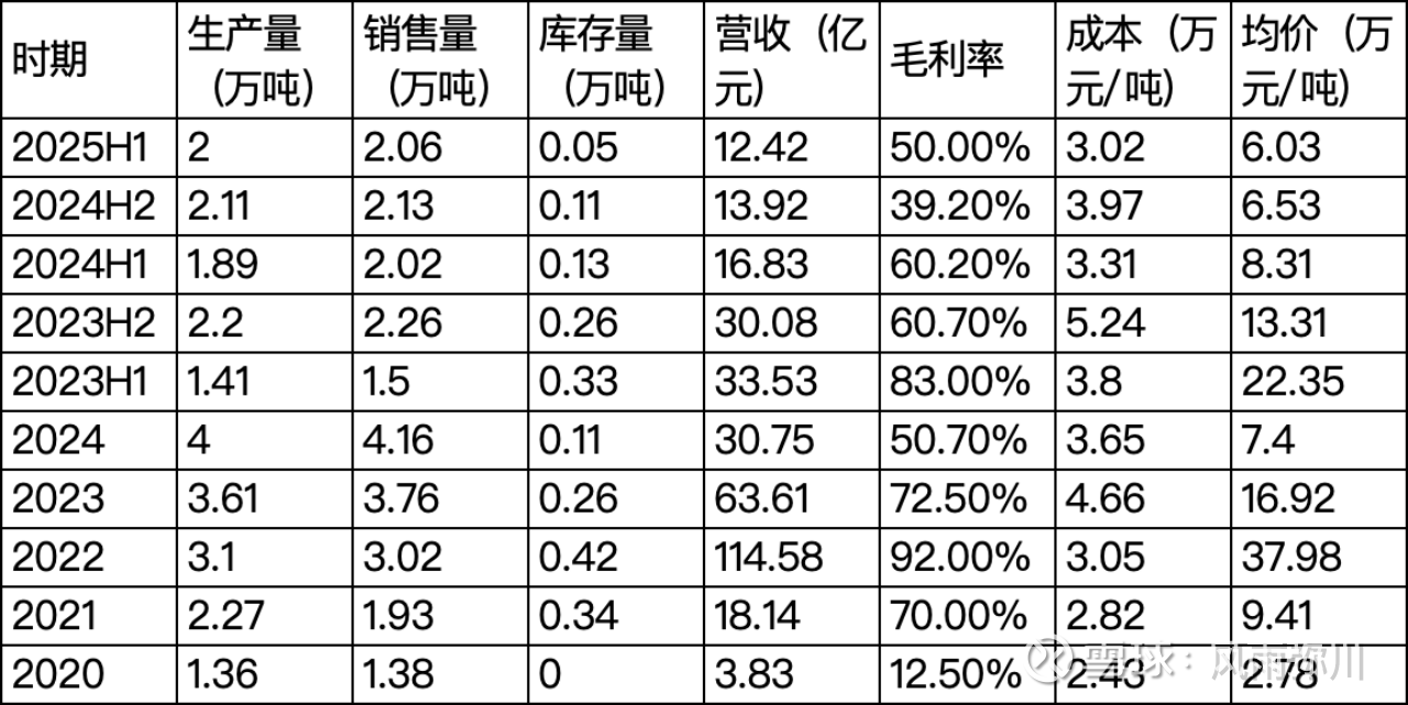 公司2025年H1锂产品销售2.06万吨,营收12.42亿,同比去年13.92亿下降1.5亿,主要是因为锂产品处于产能出清阶段导致均价下降,但是锂产品的毛利率从24年H2的39.2%提升到49.96%,说明锂产品价格有所回升,但是是否能够持续恢复很难判断。