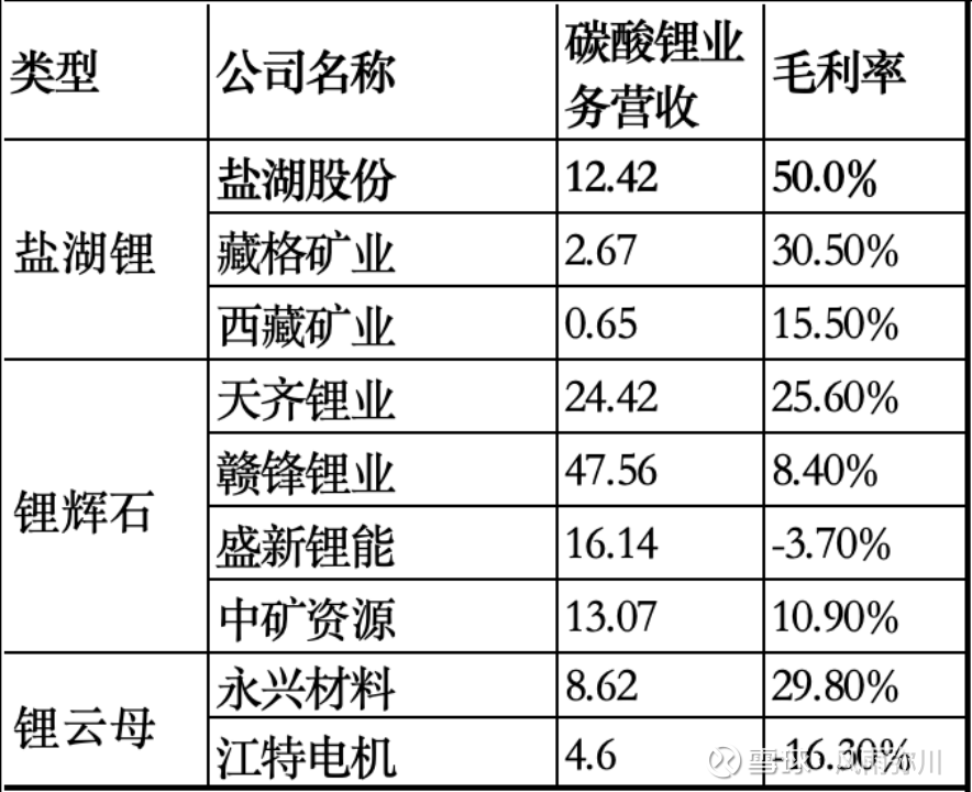 锂产品行业中,2025年H1的营收和利润情况,盐湖股份的毛利率最高达50%,远超其他家,且明显高于同属于盐湖的藏格矿业和西藏矿业,具有很强的抗周期性,但是目前锂产品营收并不算非常大。永兴材料、江特电机采用锂云母,但毛利率差异非常大;天齐锂业锂盐业务的毛利率一直很高,但冶炼子公司却在亏损。赣锋锂业有大量长协外采矿,营收巨大但是毛利率不佳;