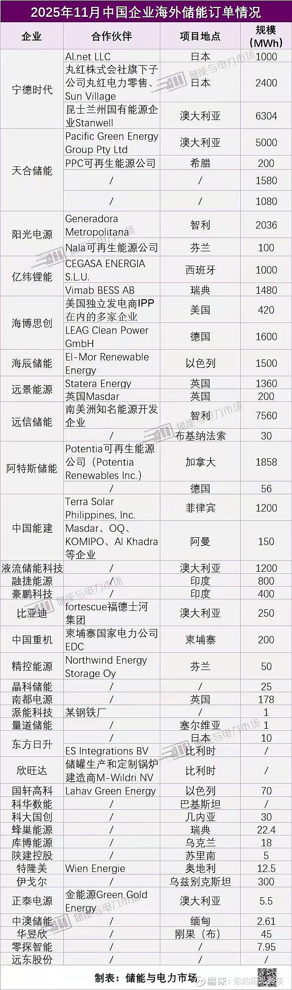 $果下科技(02655)$ 这玩意儿能给200亿?还不是港股通业务结构和海博思创差不多,都是以国内市场+大储为主,$海博思创(SH688411)$ 今年估计10亿利润,果下能有几亿?按明年来看通润装备、阳光电源、海博都是10来PE的水平,怎么A股这边给储能的估值比港股还低贴一张11月海外订单统计表,就问海博你带不带派?