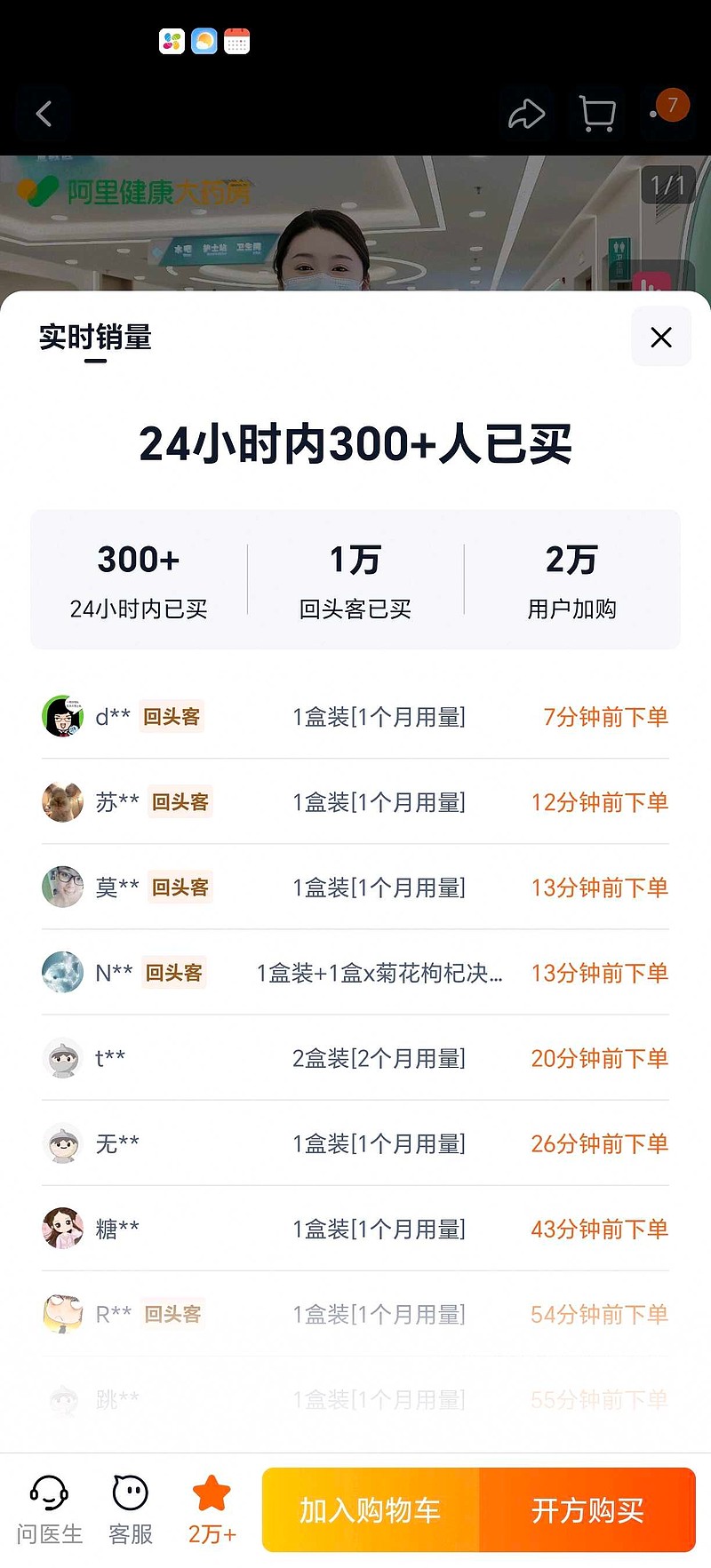 大药房销量大幅度增长,节前一周内100+销量,我刚刚截图的是24小时内销量300+,增速太爆了,20倍增量啊。