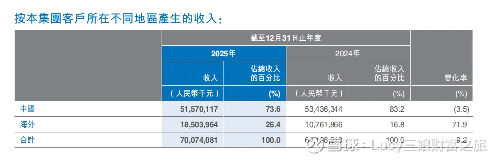 中国境内的营收占比74%,海外占比26%。海外市场同比增长71.9%增长速度很快。