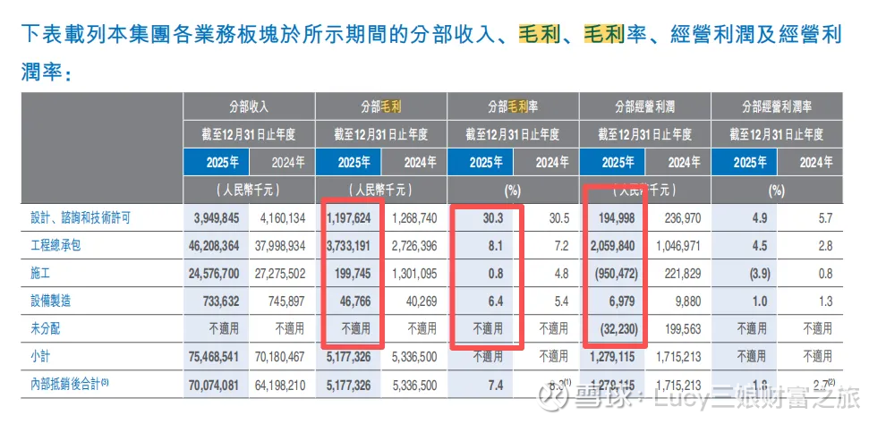 2025 年集中结算,施工板块毛利从 11 亿跌到 2 亿,亏损 9.5 亿,直接拉低整体净利润。