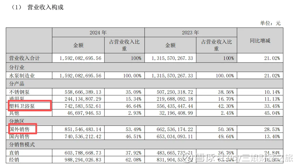 公司主要是做水泵的。而营收最大的是塑料卫浴泵,占比46.64%。