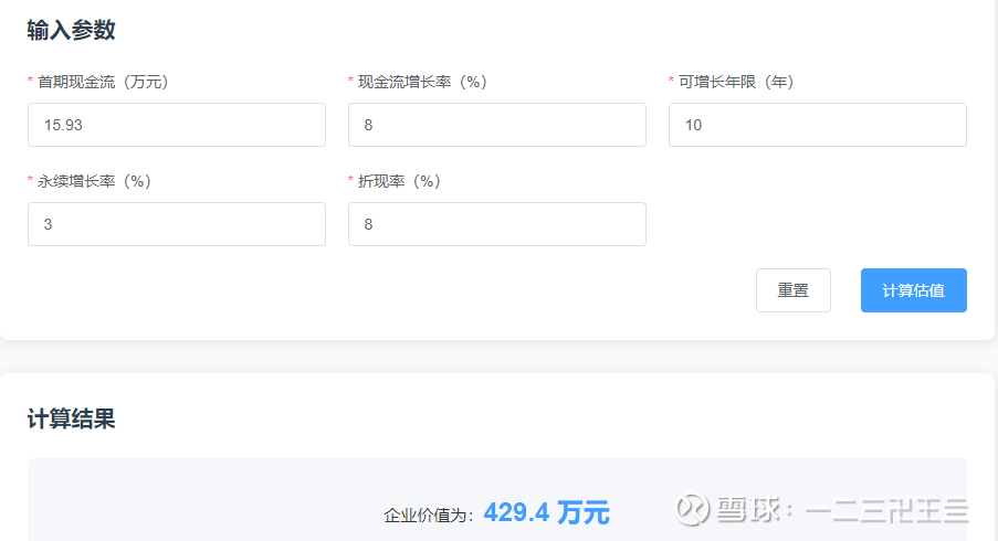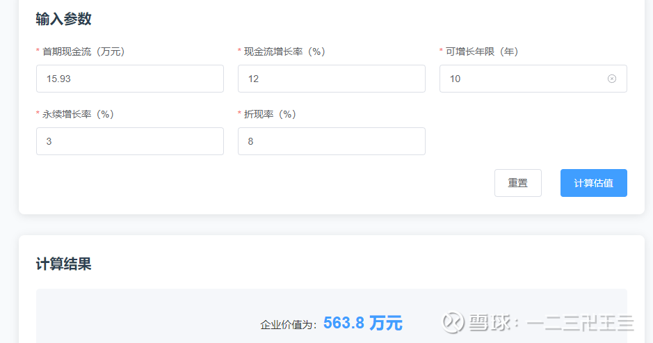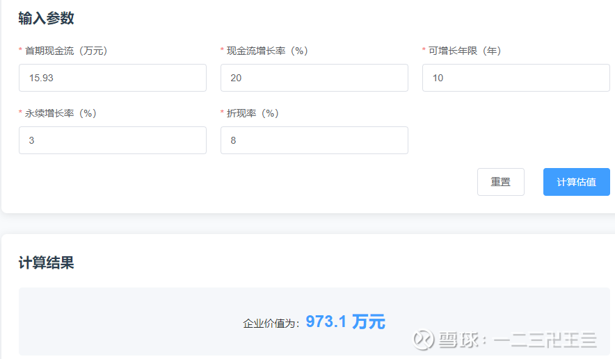 ①首期现金流:取2020-2024年五年净利润平均值的75%,(17.93+24.03+20.79+18.8+24.68)/5*75%=15.93亿元。