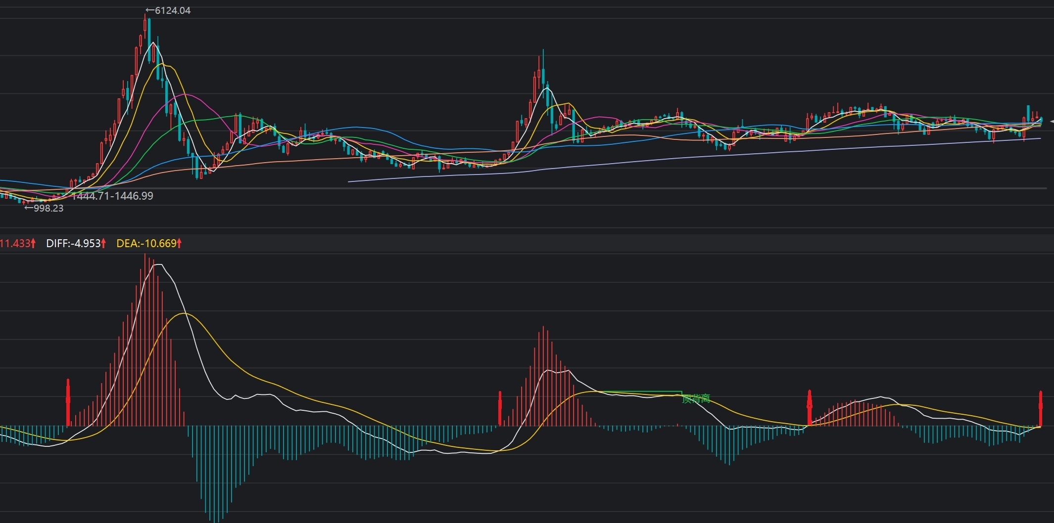 说指标,我也有一个。如下。看下图是不是每一轮大级别走势都有提示,从2005年998开始。😍。有这个, 熊市时候空仓就好, 牛市满仓就好。😊