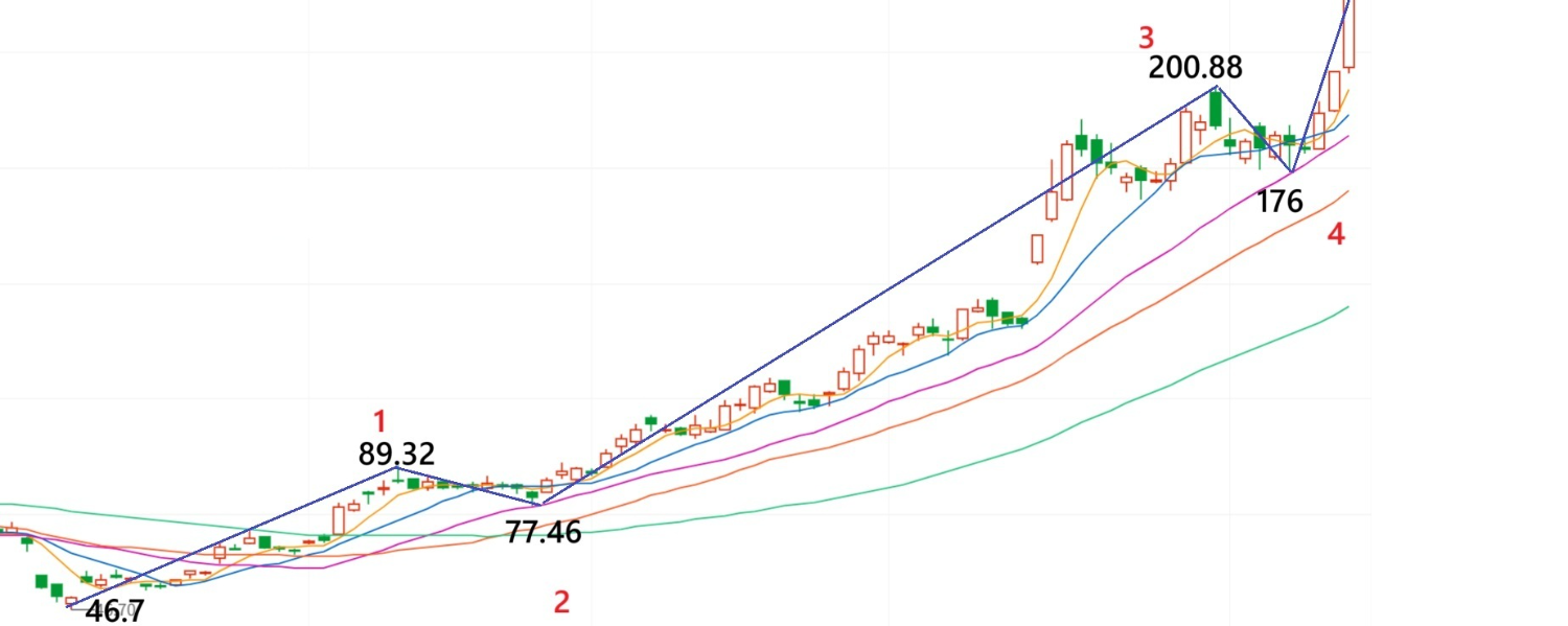 假设从176起来的这一波上涨是从46.7起来的第5浪(因为理论上其实还有其他可能)。 那么走势大概是这样的,如下图: