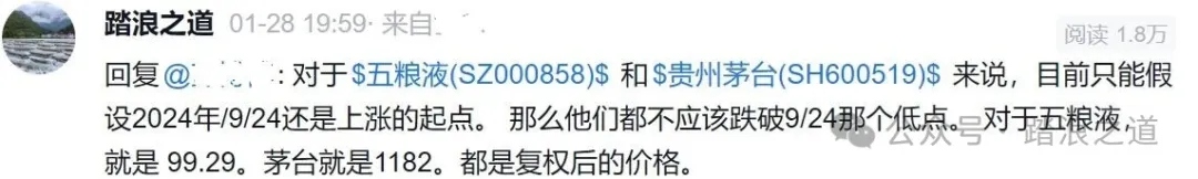 当然也没有只跌不涨的板块,我1/28刚和别人说五粮液不应该跌破99.29。1/29日五粮液在到最低点100.50就开始反弹涨停。贵州茅台也类似。