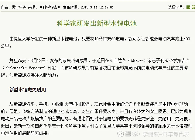 2013年纳米碳锂电池:复旦大学说搞出了“充电10秒能跑400公里”的水锂电池,并在《自然》(Nature)杂志子刊《科学报告》(Scientific Reports)刊发。现在也没下文了。