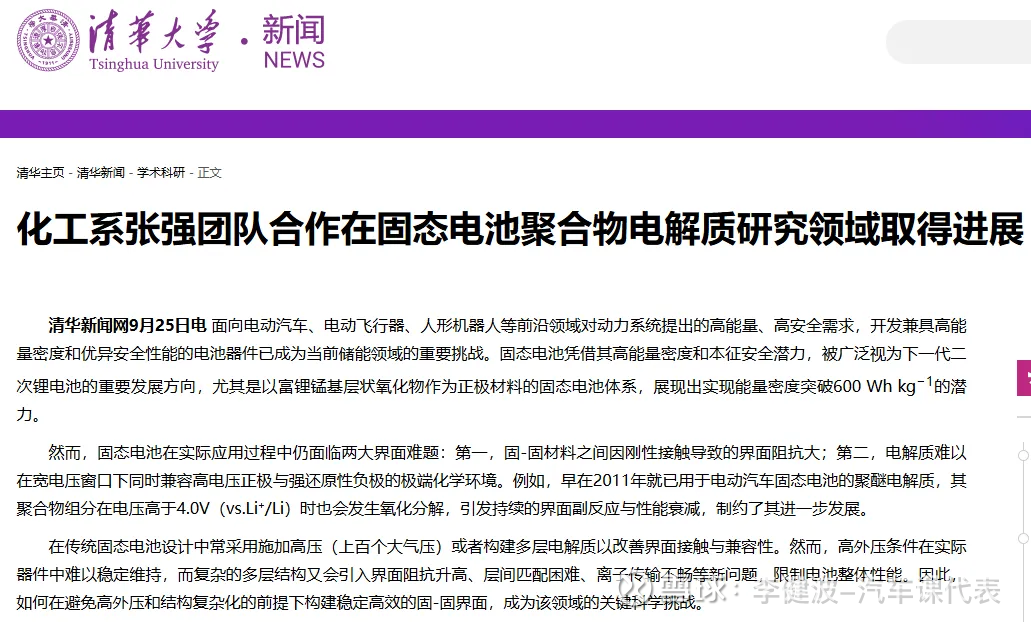 清华张强教授团队在顶级期刊《自然》(Nature)上发文,说他们找到了设计电解质的新方法,解决了固态电池的两个核心“界面难题”,朝着“600Wh/kg”的超高能量密度电池迈进了一步。