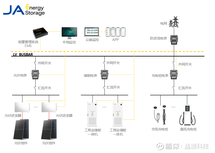 基于这一原则,在光储充一体化方案中,晶澳采用以交流母线为核心的系统架构,将光伏、储能与充电设施以标准并网设备形式接入。这一选择背后,是长期工程实践的综合判断: