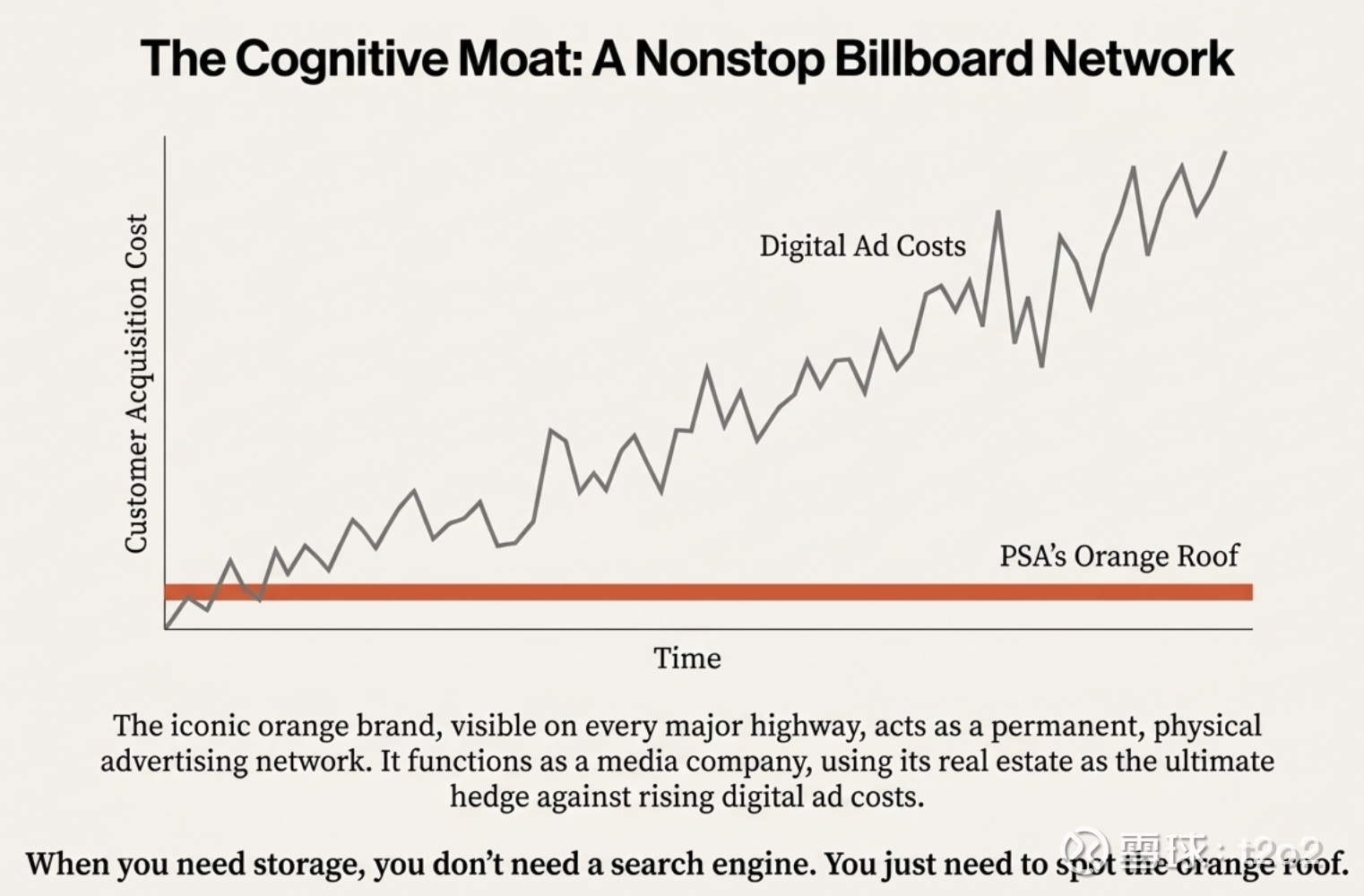 • 认知护城河: 遍布全美核心地段的橙色屋顶不仅是资产,更是物理版的“广告牌网络”。这种极高的品牌辨识度极大地降低了获客成本 (CAC)。当消费者需要存储空间时,他们不再需要搜索 Google,而是直接寻找那个橙色标志。