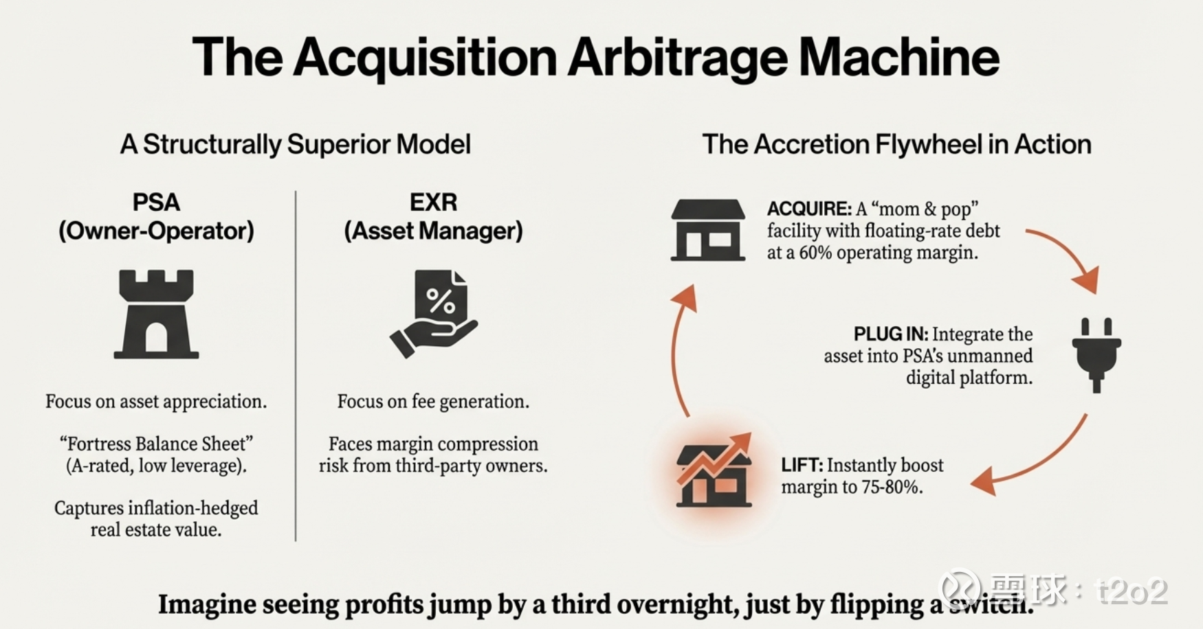 • 收购套利: 当 PSA 收购一家利润率为 60% 的独立运营设施并将其接入自身的数字化平台后,利润率往往能立竿见影地提升至 75-80%。
