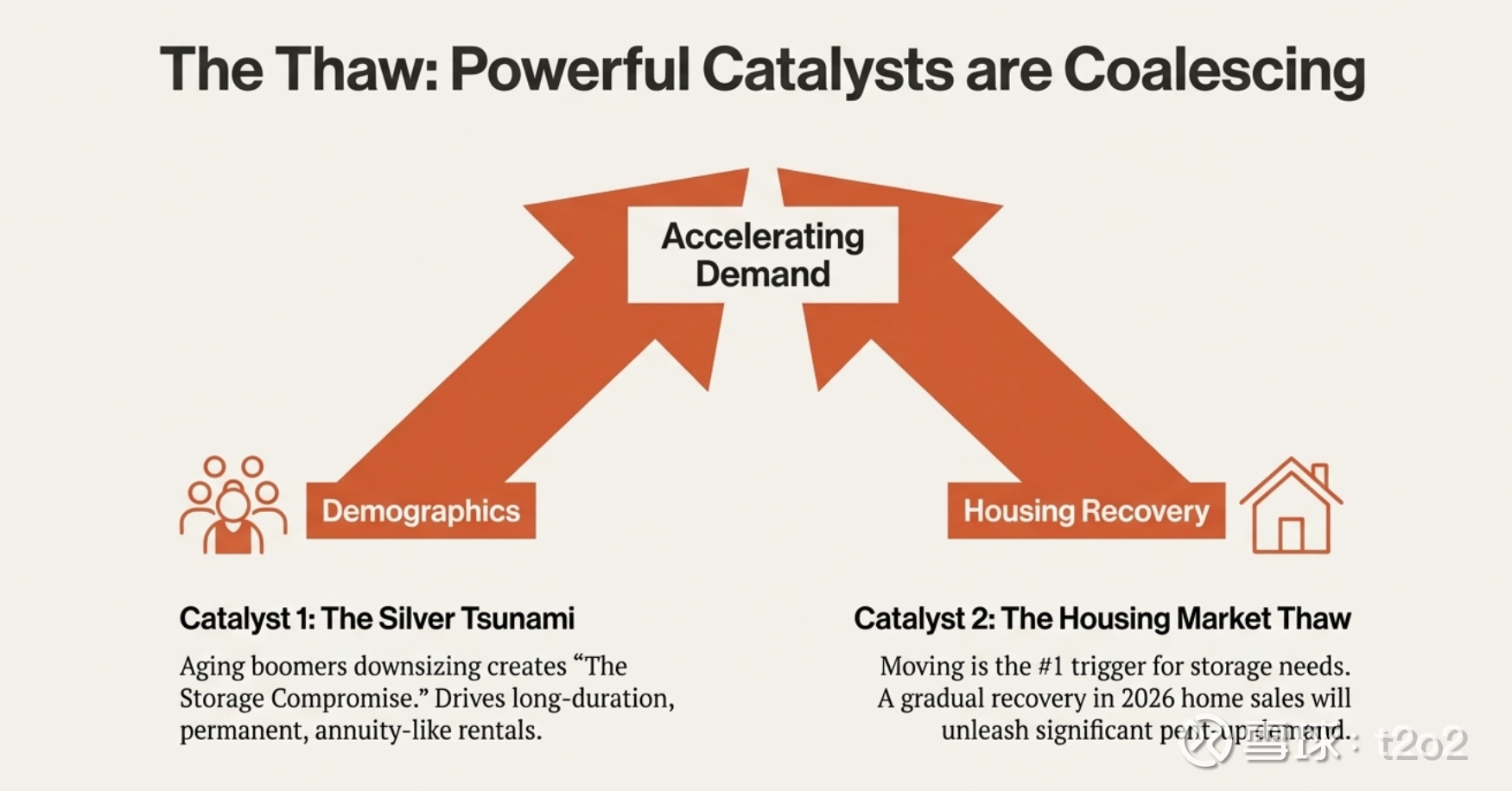 2. 银色海啸: 随着婴儿潮一代缩小住房规模 (Downsizing),他们对存储的需求从“临时性”转向“永久性”,这大大延长了客户的生命周期价值 (LTV)。