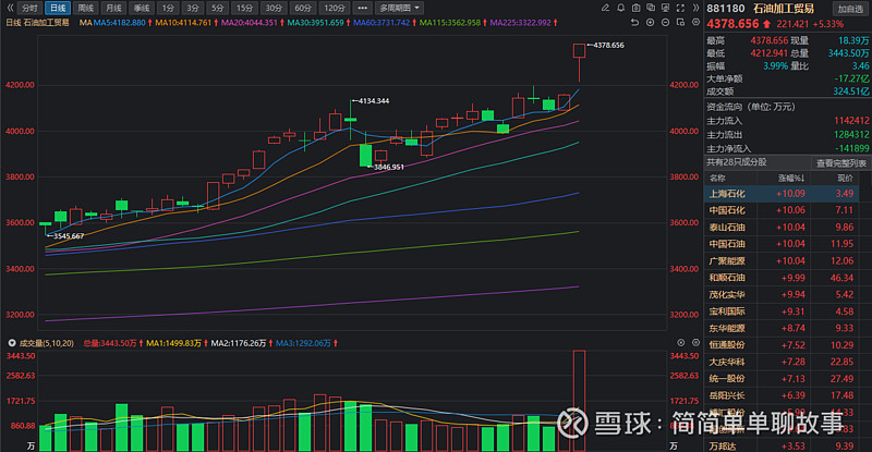 公司资料需要自己评估风险,这里只做K线技术分析,技术理论思路详见主页置顶文章内容。$石油加工贸易(BK0080)$