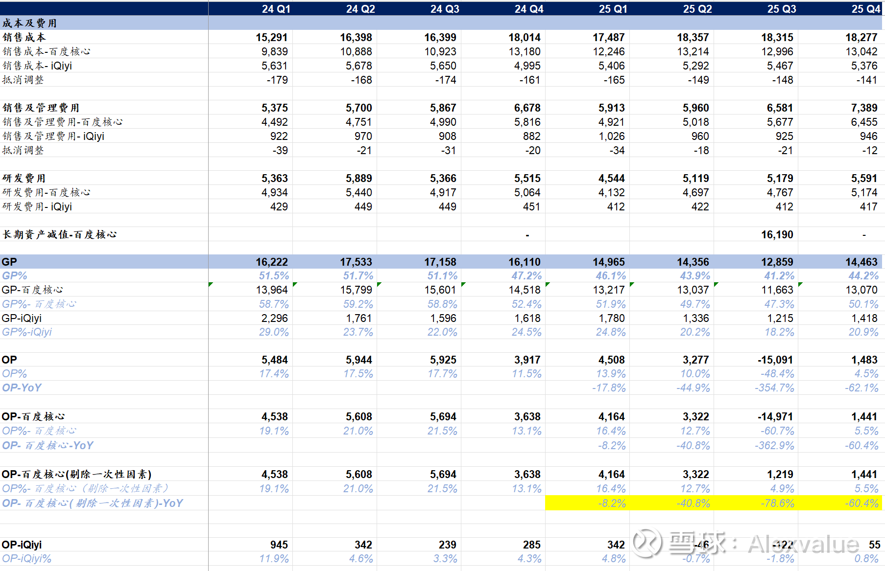 总体看这份财报,虽然增加了很多AI的口径,但实话实说,百度作为过去一年市场热炒的纯血AI标的,并没有让我看到AI带来ROI的改善,反而是AI的进步让百度的搜索业务不断地收缩。(纯个人观点,百度的多头们请轻喷,这个拆分也是基于百度这这两季的新口径拆的,不保证准确性哈)。