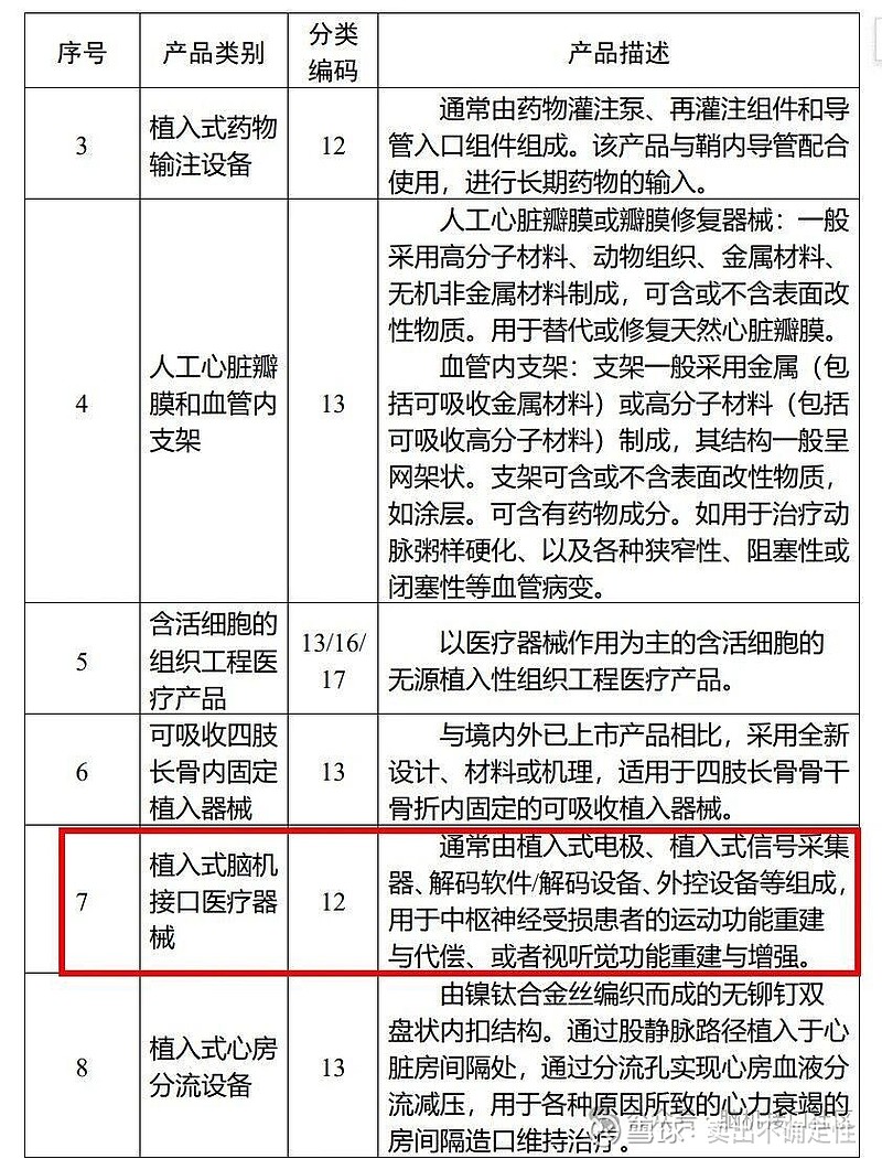 “植入式脑机接口医疗器械”首次入选该医疗器械目录。