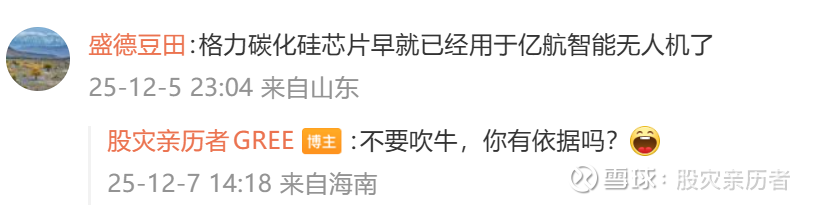 于是我也发了一条格力电器也要飞无人机了吗?有读者看到后,告诉我是真的,“格力碳化硅芯片早就已经用于亿航智能无人机了”。