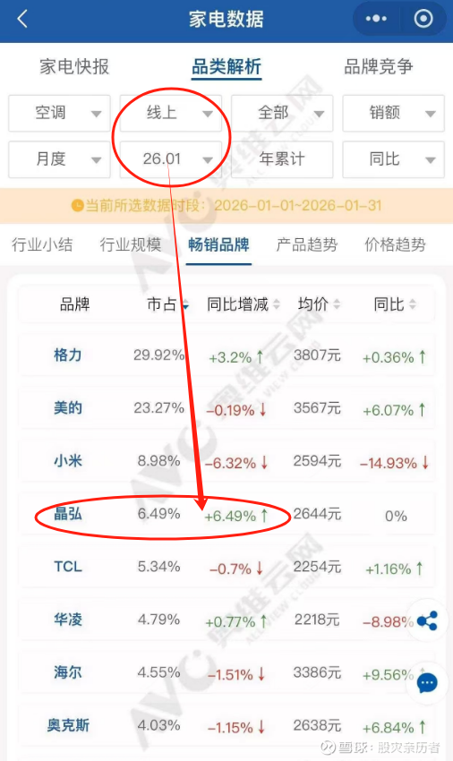 这份数据准确吗?线上销售过去格力是比不过其他商家的。是不是今年一月份其他商家网上销售提前放假,回家过马年春节了?怎么格力的线上市场占有率超过第二名那么多了?尤其是去年下半年刚问世不久的“晶弘”空调的市场占比冲上前四名了!若是格力+晶弘一起算,市场占有率超过了37%。这还是目前那个网络舆论纷纷议论的,已经日落西山的格力电器吗?