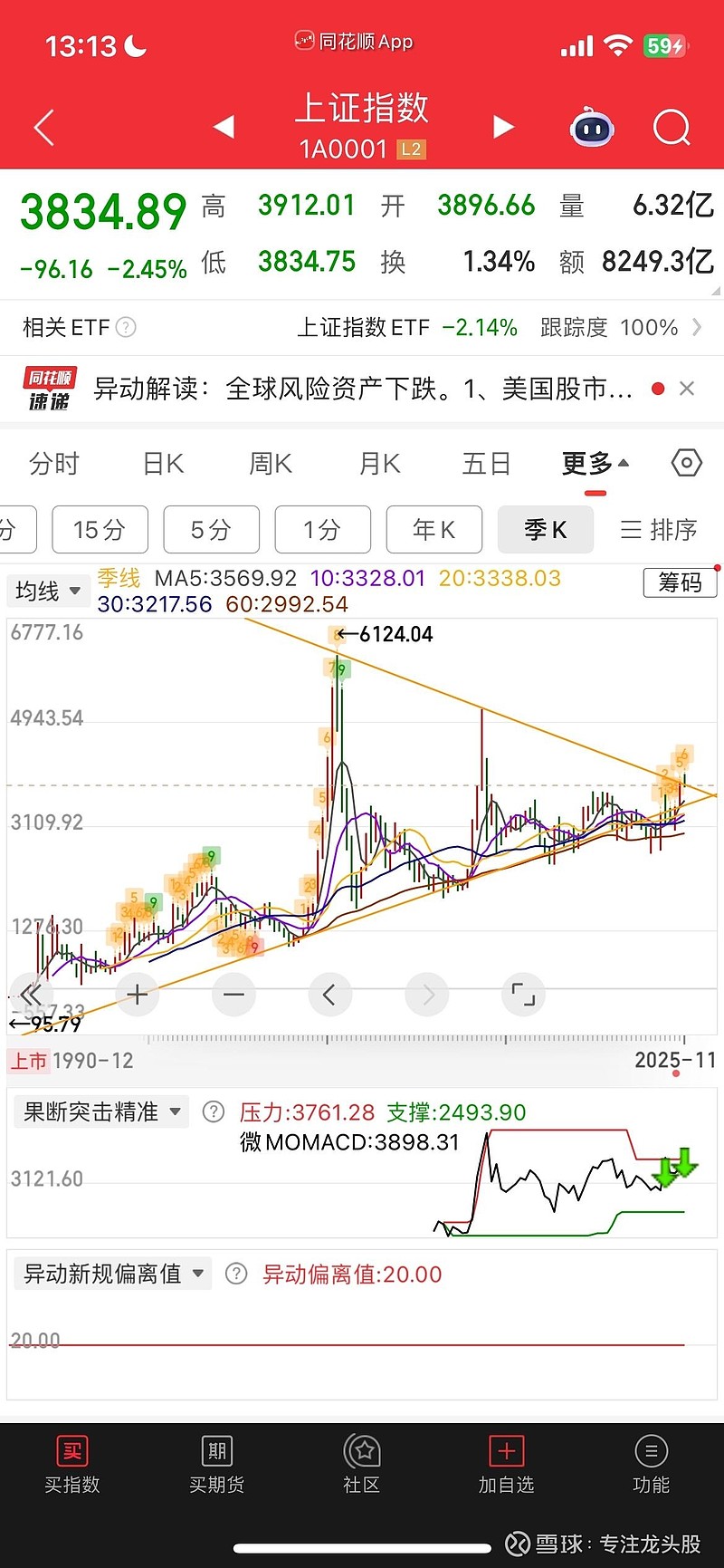这里有个回踩很正常,总不能今年直接冲4500,下方支撑在3700左右,回撤后继续看好明年的指数行情,感觉这波指数回踩是开中线股指期货的好时机。