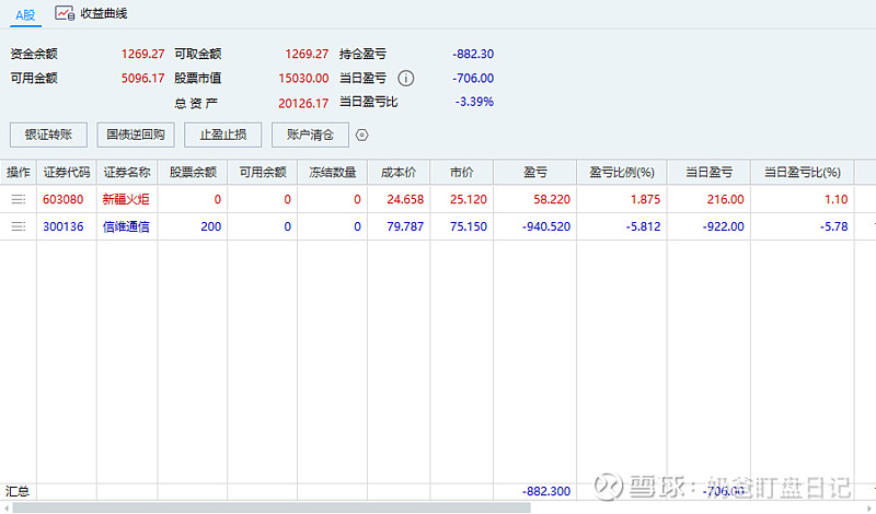 今日综合亏损:706 元