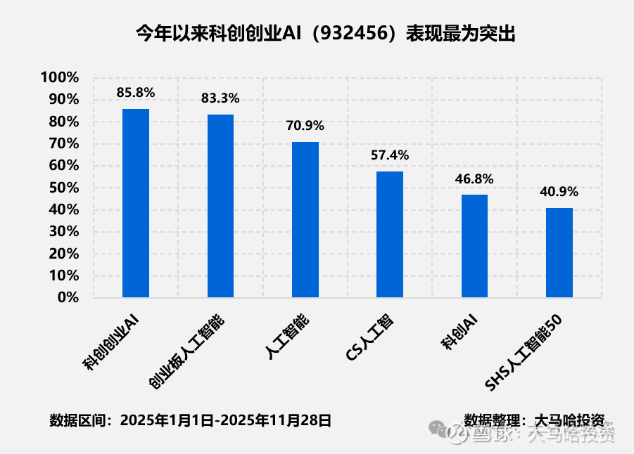 惊喜的发现,科创创业AI(932456)竟然是今年以来所有人工智能主题指数中表现最优的那只,年内上涨85.8%。