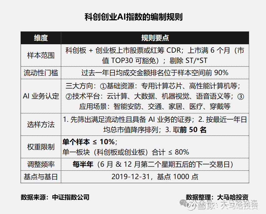 为说明这一点,我们先来看下科创创业AI指数的编制规则,具体如下: