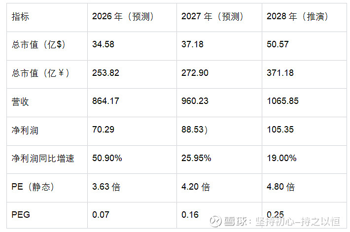 2026-2028业绩预测: