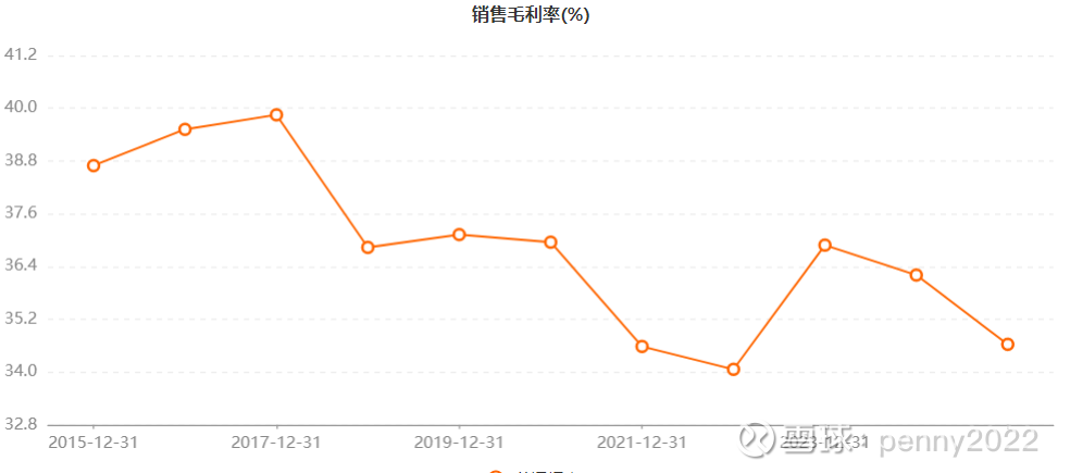 毛利率最高的时候能达到40%,最差的情况下在34%左右,基本上有6%的波动。