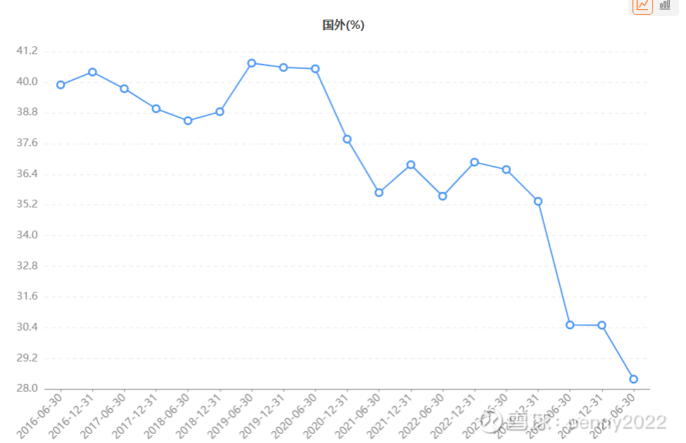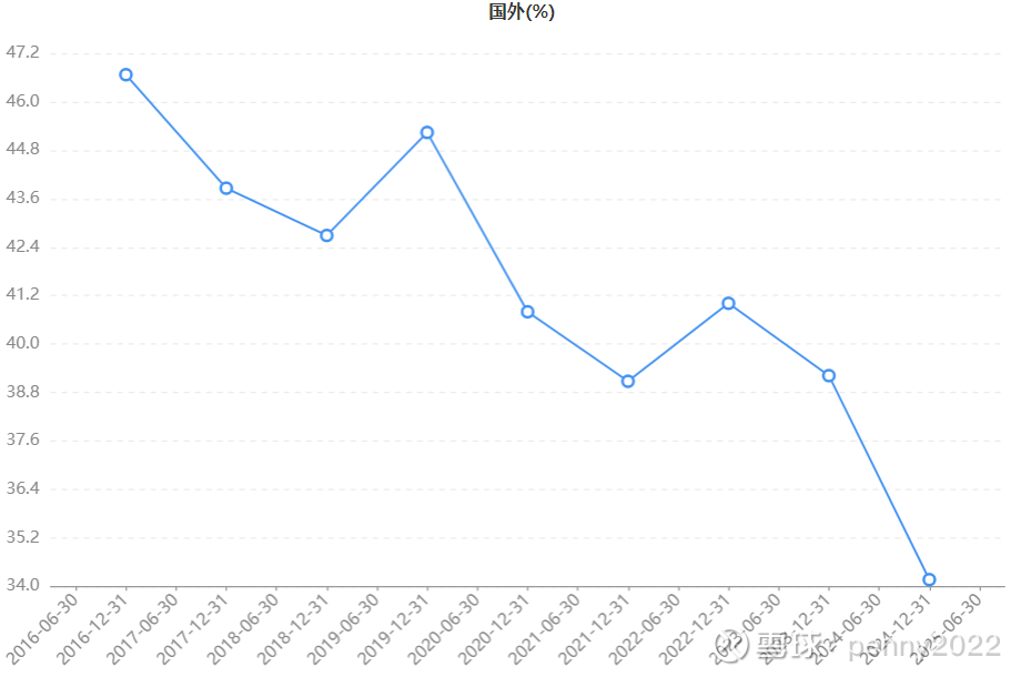 海外营收占比一直在下降从40%多到现在28%,但由于海外市场的毛利率更高,利润占比还比较高。