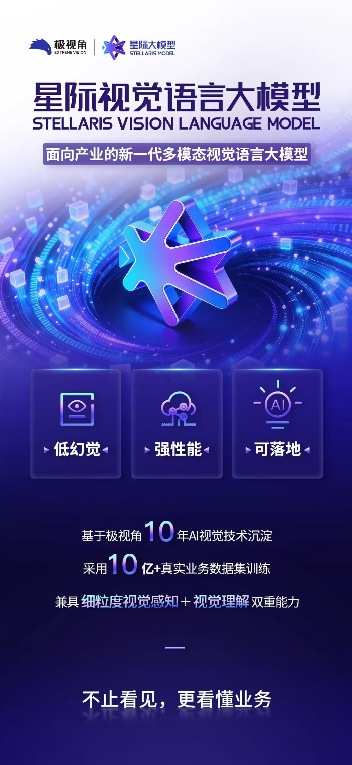 所谓视觉语言大模型,简单来说,就是能让机器具备像人一样「看懂」图像与视频、「读懂」视觉信息并将其转化为语言逻辑、甚至完成复杂的视觉语言推理的能力,从而实现跨模态的信息处理,推动了AI向更加智能和多元的方向发展。极视角最新推出的高精度全栈式视觉语言基座模型星际视觉语言大模型,将视觉感知与语言理解技术融合,兼具「细粒度视觉感知」与「视觉理解」的双重能力,可实现超过80.0%的视觉感知任务(包括目标检测及定位)通过简单的文本提示完成,无需重新标注数据和训练。其较高的准确度和泛化能力得益于对100多个行业海量训练数据的深度汲取,能够在复杂场景下保持高准确度,真正实现了从「视觉感知」到「业务认知」的跨越。