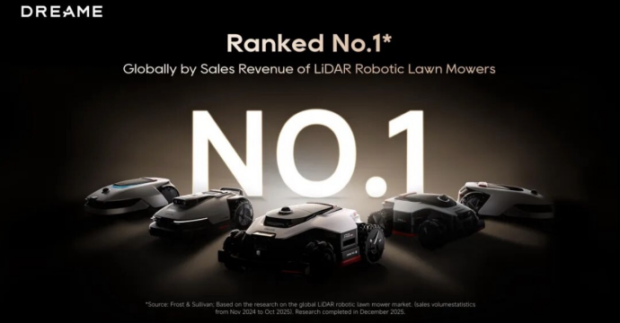 割草机器人更猛。追觅生态签了1000万颗JT系列独供订单,刷新全球消费级机器人单笔订单纪录。无人配送车领域,九识智能20万颗独家定点,新石器最大供应商,头部客户100%覆盖。Robotaxi领域,Yole数据显示禾赛全球市占率61%,连续四年第一,全球前十大Robotaxi公司九家选禾赛。