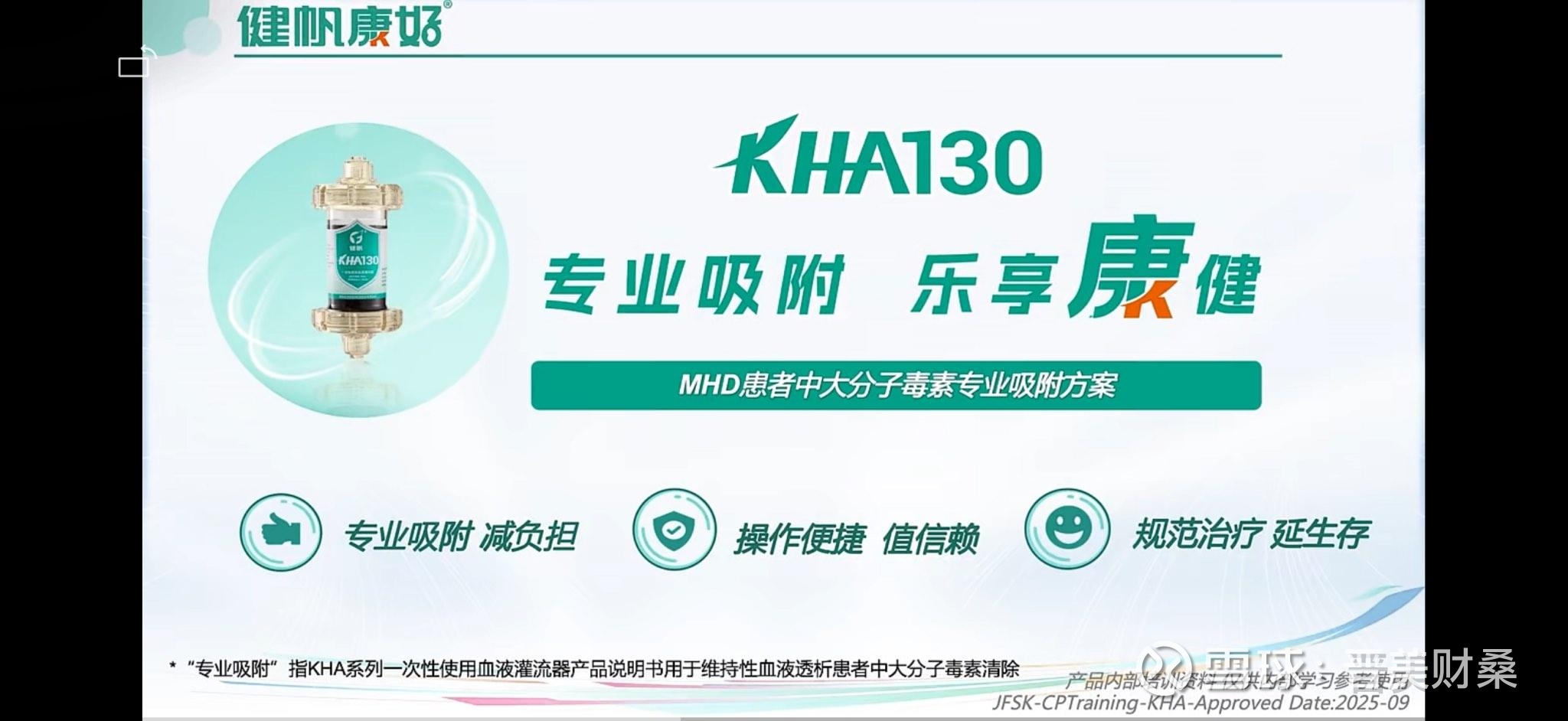 毒素清除:同时结合健帆生物血液灌流吸附柱KH130来高效清除肌酐、β₂-微球蛋白等尿毒症毒素,而不会损失白蛋白等有益蛋白。
