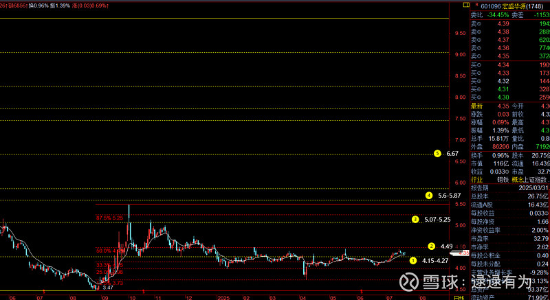 中报还是超预期的,股价高开后震荡回落,缺口被补掉。目前中期趋势止跌。空间支撑4.15-4.27,短压4.49、5.07-2.25、5.6-5.87区间。