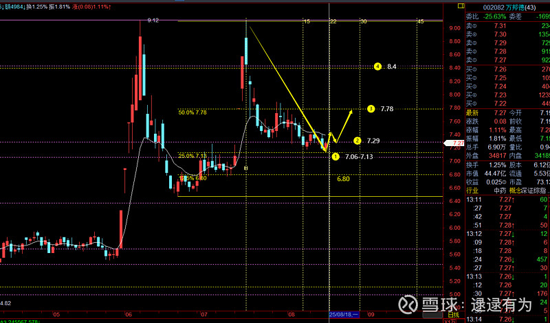 空间支撑7.06-7.13,短压7.29、7.78、8.4附近。时间窗口8月18日,下周一。
