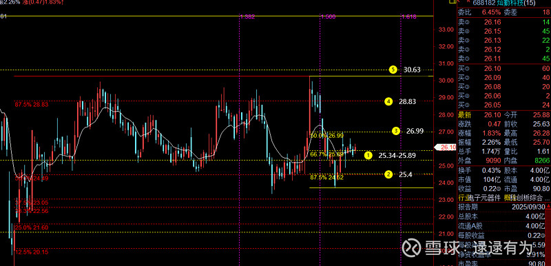 当前支撑25.34-25.89、24.50附近,空间阻力26.99、28.83、30.63附近。