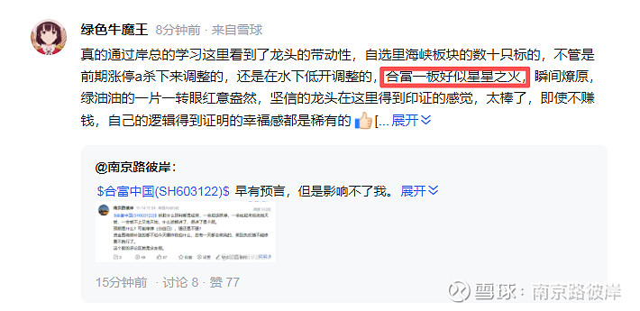 为什么合富才是最高级的,才是最核心的?谁真为了板块好,一路控制?是谁两个阴线给监管,一个阴线给减持,然后26日23阳?今天合富一板,整个短线市场都火热了。看看热股指数,都会有答案的。$合富中国(SH603122)$