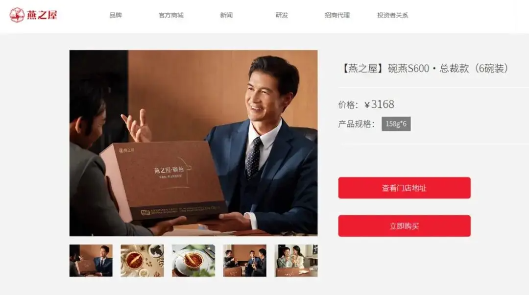 2025年3月,燕之屋官宣万科创始人王石代言“总裁碗燕”产品,拓展高净值精英男性滋补市场。