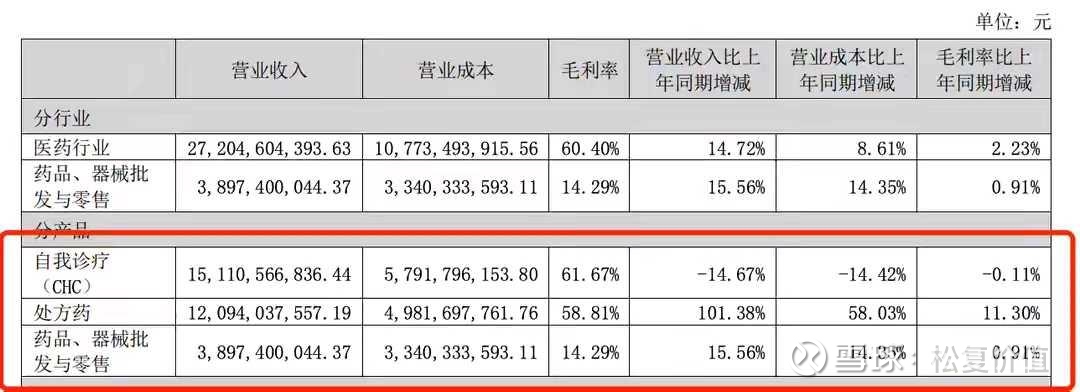 总结:季度波动很正常,可能是市场需求扰动,也可能是渠道原因,也可能是公司利润调节原因,所以单看一个季度意义不大,全年看,华润三九的基本盘CHC,确实压力很大,营收全年下滑14.7%。不好卖了。