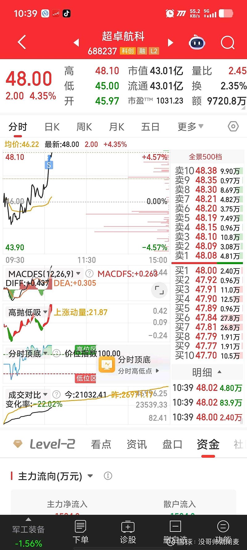 $超卓航科(SH688237)$