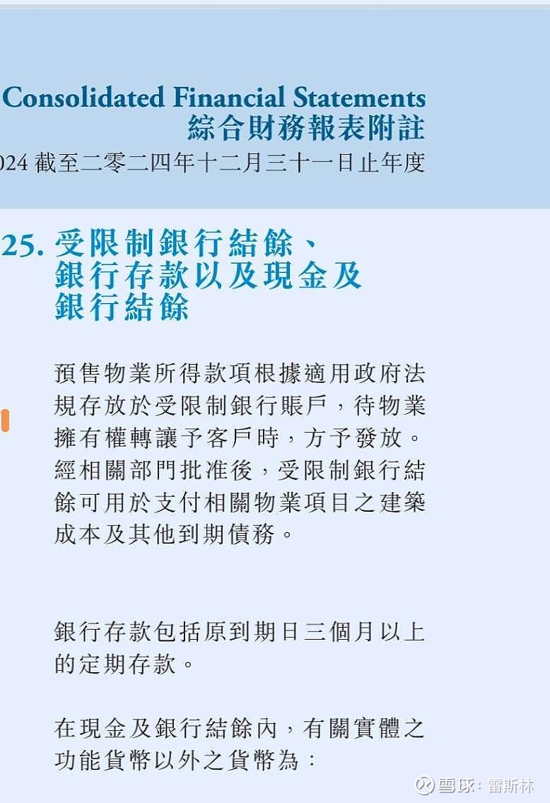 $汤臣集团(00258)$ 再就是原来有很多球友担心今年因为大笔缴税导致自有资金减少,从而会影响明年分红的担忧,我查看了2024年年报并摘录了部分内容(如图),汤臣君品的预售款经监管部门批准是可以支付项目工程款的,现在监管账户里的资金量我估计有80-90亿。