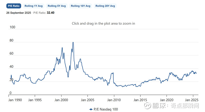 再看纳斯达克100的PE变化。。。一个股票的命运啊,当然要靠自我奋斗,但是也要考虑到历史的进程。