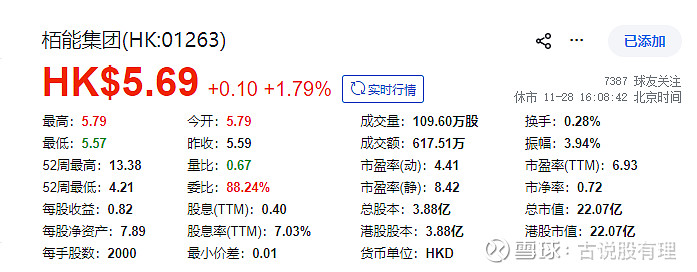 市净率 0.72 倍:股价(5.69 港元)低于每股净资产(7.89 港元),说明当前市值尚未覆盖公司账面资产价值,这种 “破净” 状态通常反映市场对短期盈利的担忧,但结合 2024 年后经营复苏的趋势,后续资产价值有望通过盈利释放得到重估。