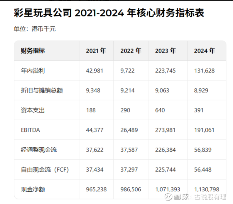 现金净额从 2021 年的 965,238 千港元≈9.65 亿港元,逐年增长至 2024 年的 1,130,798 千港元≈11.31 亿港元—— 尽管盈利波动大,但公司持续积累现金,现金流安全垫充足。 公司轻资产模式的 “低运营成本、高现金流韧性” 是优势,但过度依赖核心 IP 导致盈利波动极大,新 IP 的盈利贡献尚未稳定。