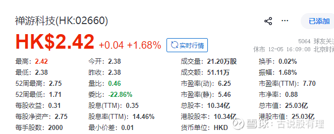 以当前股价 2.42 港元(2025.12.07 数据)来看: